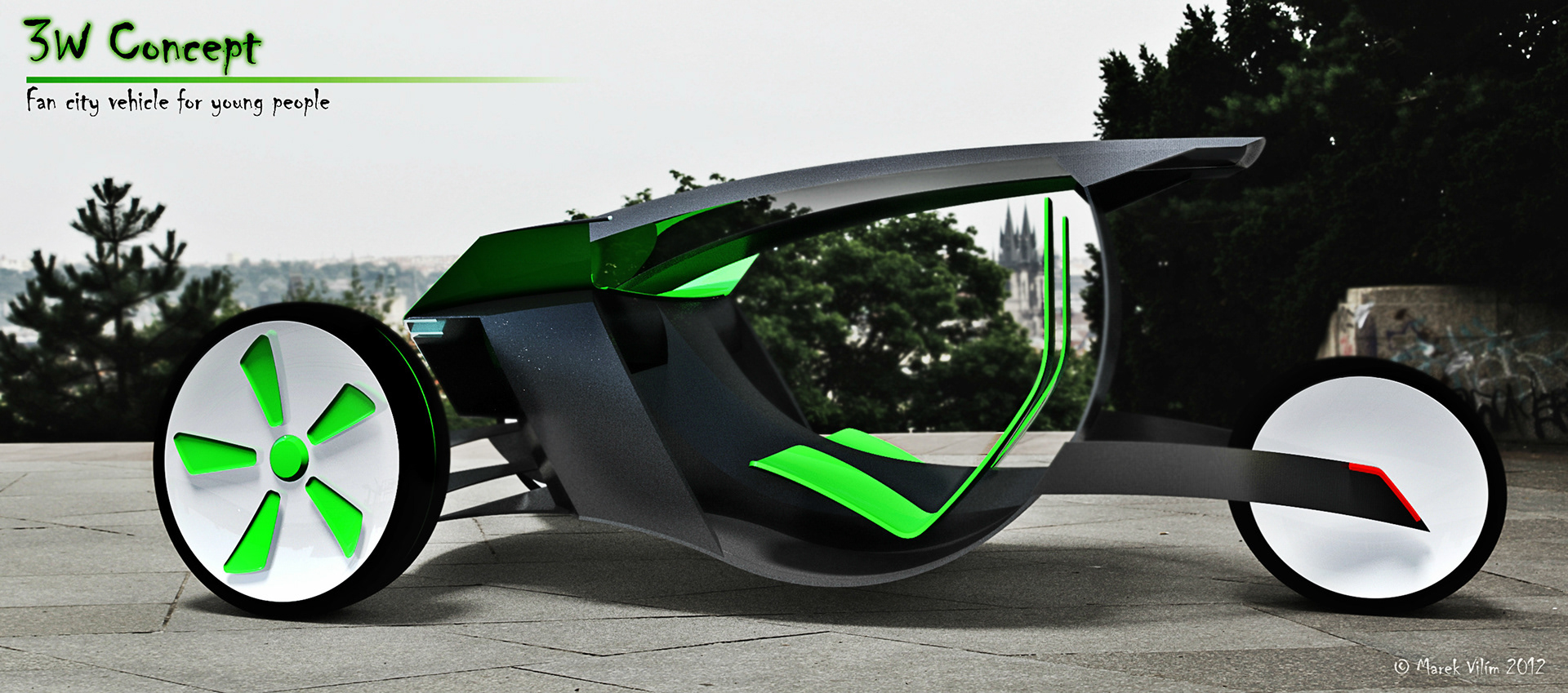 3W Concept is a free idea of 3 wheller vehicle for young people. Free concept modeling. New fresh vehicle for old towns.