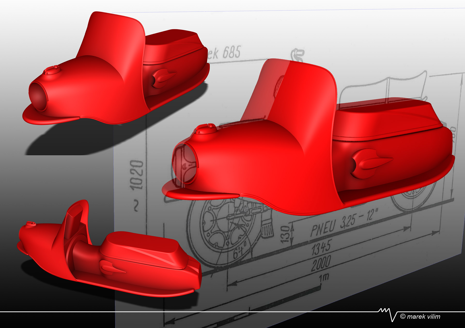 Surfacing from mesh data (reverse engineering) for Cezeta 175 (model 506). Electric scooter project.