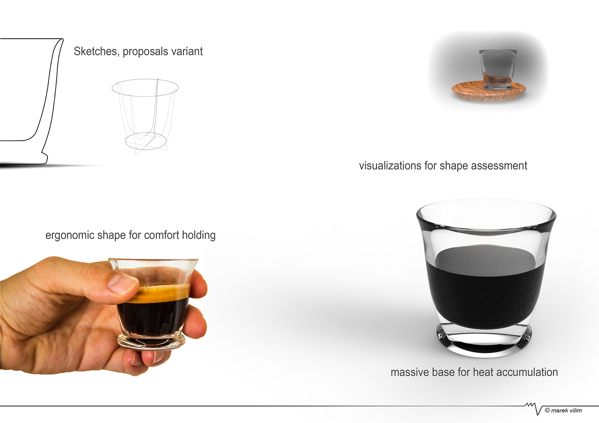 This is a simple ergonomic espresso glass cup. Designed for enjoying your coffee time. Handmade with Czech glass makers. Realized project.