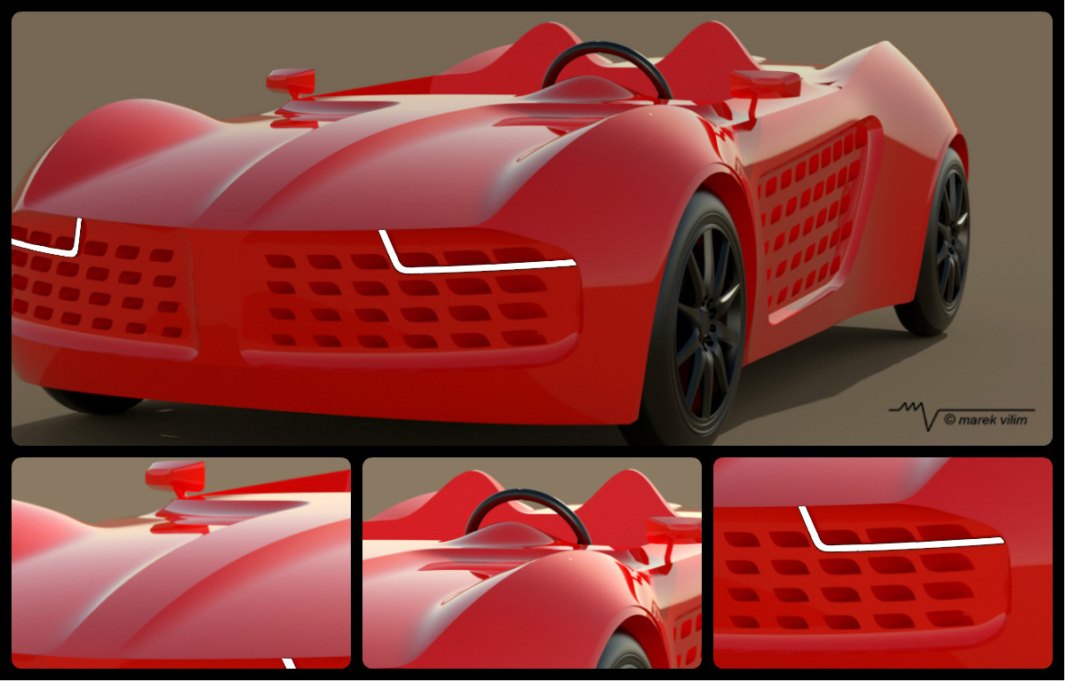 Inspired by leafs. Friendly design with dynamics. Car for young couple and free time on country... Reducing weight with mini leaf gaps on front/rear and side panels. Quick surface model.