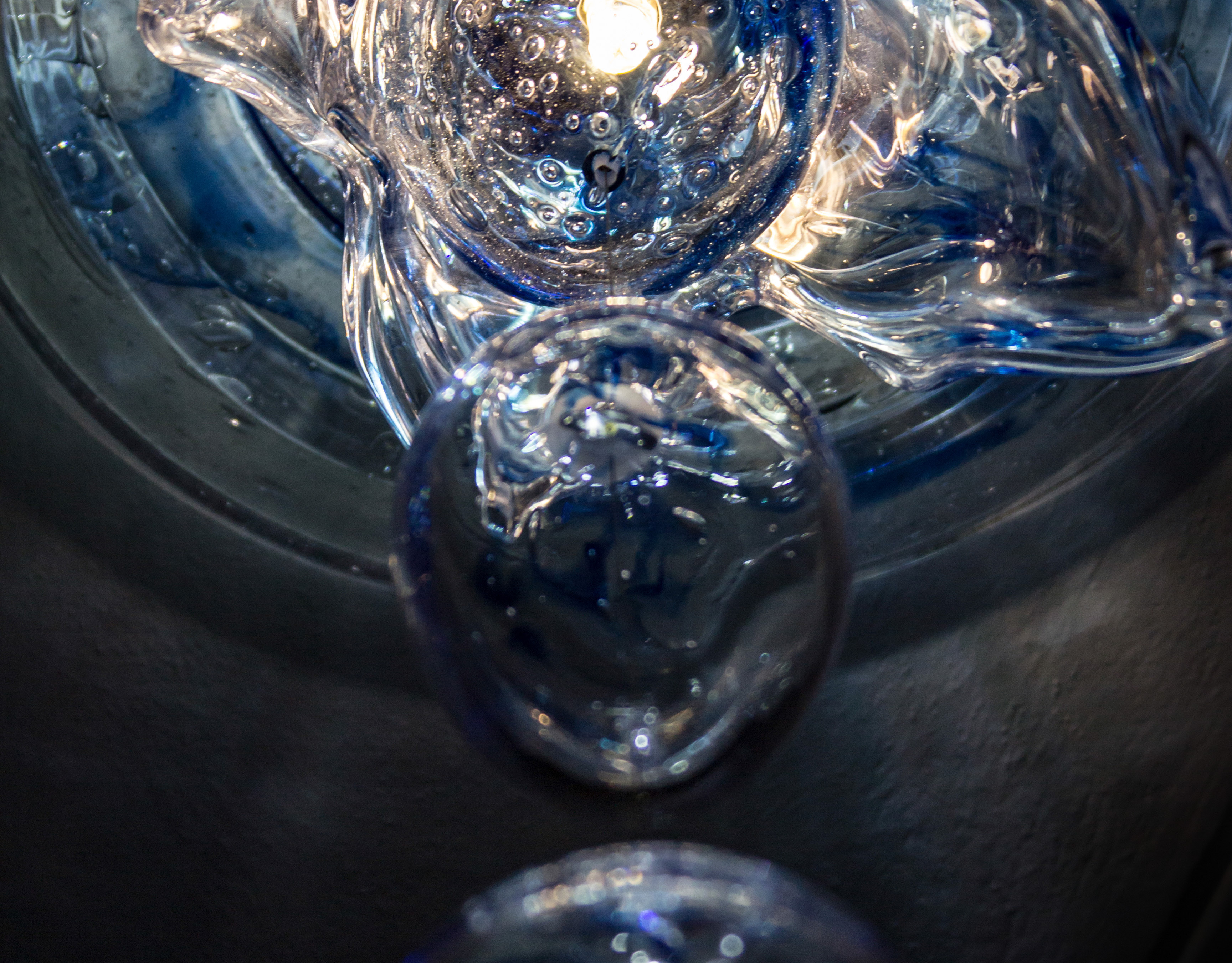 Water drop inspired glass chandelier is a special light source for specific interiors. The light source in top part describes fascinating shapes of glass. Crazy Czech Surrealism glass sculpture for art-focused interiors. Realized project.